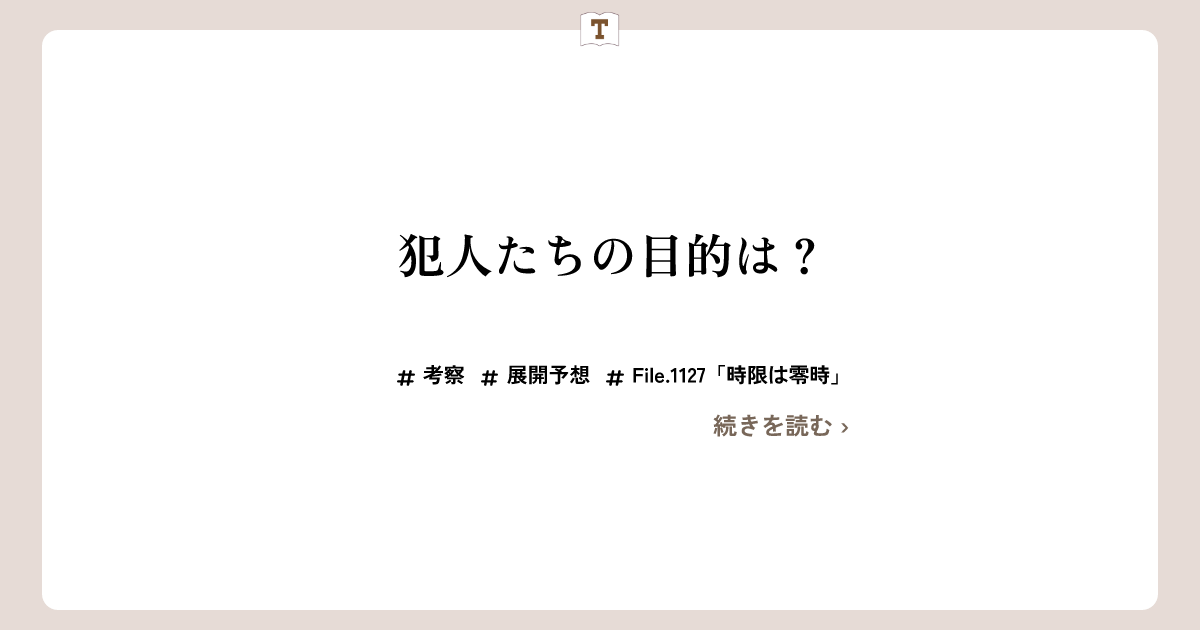 【File.1127「時限は零時」】犯人たちの目的は?【2024年30号 (6月19日号)】 | 帝丹図書館